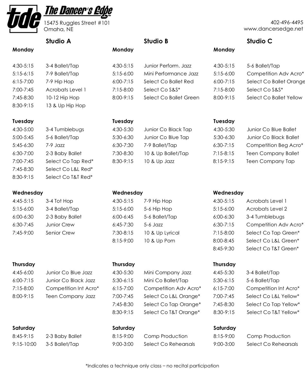 Competition classes are by audition only. These include any Mini Company, Petite Company, Junior Company, Teen Company, Select Company, & Crew classes.